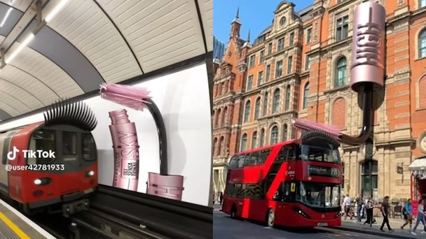 To spotlight their new mascara range, Maybelline harnessed the power of digital trickery, placing giant rubber eyelashes on a London tube and bus with the help of a little CGI magic. The resulting viral TikTok clip compiles separate 5-second snippets of the 'lashed' tube carriage and bus. As they head toward a colossal Maybelline Lash Sensational Sky High mascara wand, the lashes are elegantly brushed by the wand's touch, creating an illusion that mesmerises online audiences.